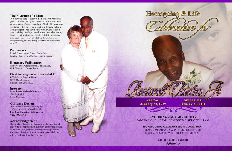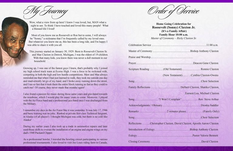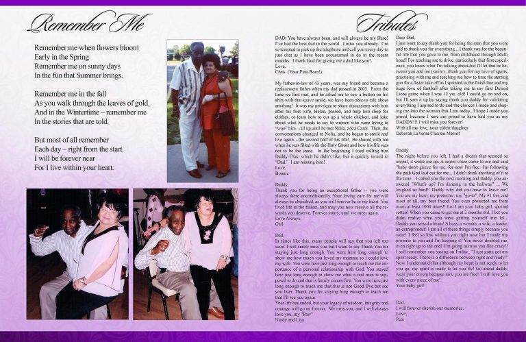 This exquisite design will showcase your loved one in a large eight-page booklet or other format.