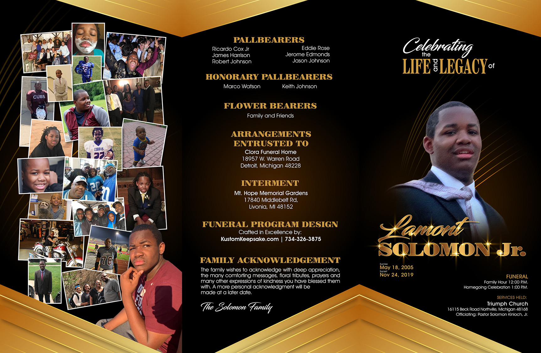 A dazzling design that presents well with gold or silver trim on a dark background.